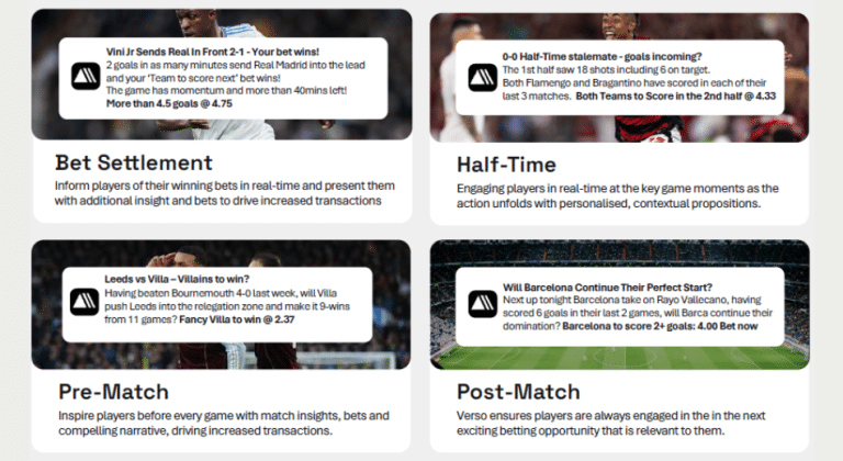 VERSO COMBINA LA COMPRENSIÓN DEL PARTIDO EN DIRECTO CON LA INTELIGENCIA DEL COMPORTAMIENTO DEL JUGADOR.